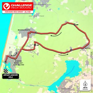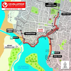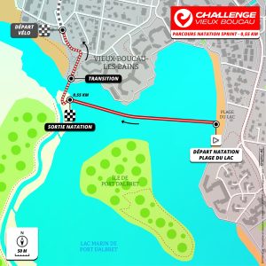 750m de natation dans le lac marin suivi de 25Km de vélo pour finir sur 5Km de course à pied.