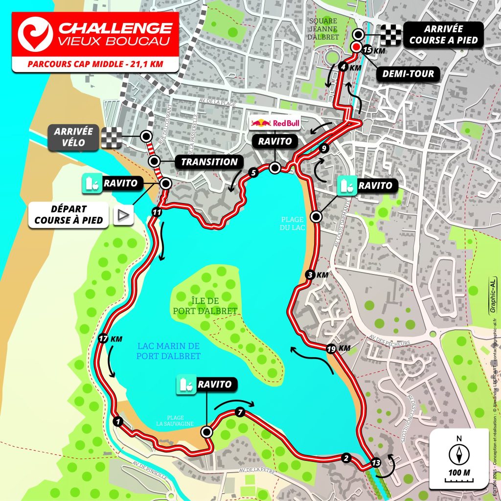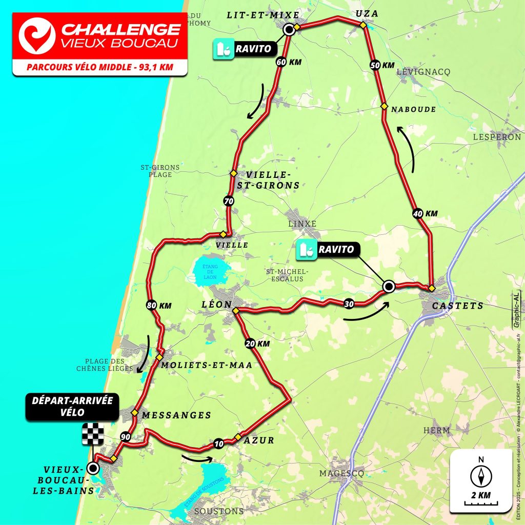 Your race will start in the unique Vieux Boucau marine lake with a 1.9km swim. The bike is a 90Km loop on the flat and fast roads through the pine forests of the Landes!